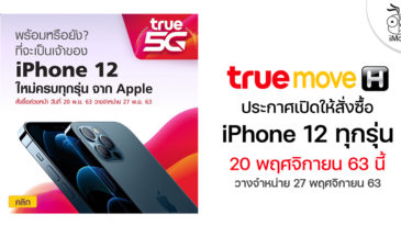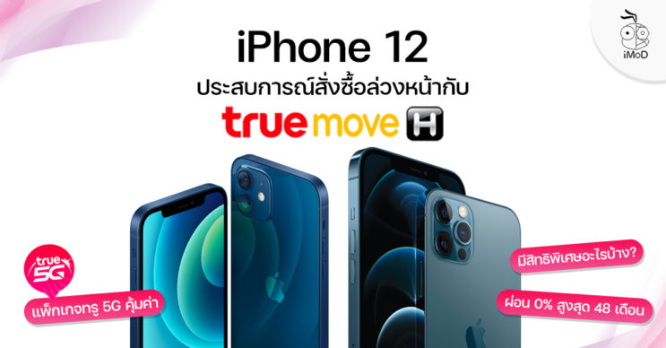 TrueMove H ได้เปิดให้สั่งซื้อ iPhone 12 ทุกรุ่นล่วงหน้าเมื่อวันที่ 20 พฤศจิกายน 2020 ที่ผ่านมา มาพร้อมกับราคาพร้อมแพ็กเกจที่คุ้มค่า ผ่อน 0% นาน 48 เดือน รวมถึงสิทธิพิเศษมากมาย เรามาชมกันว่าการสั่งซื้อ iPhone 12 ล่วงหน้ากับทรูนั้นดีอย่างไร