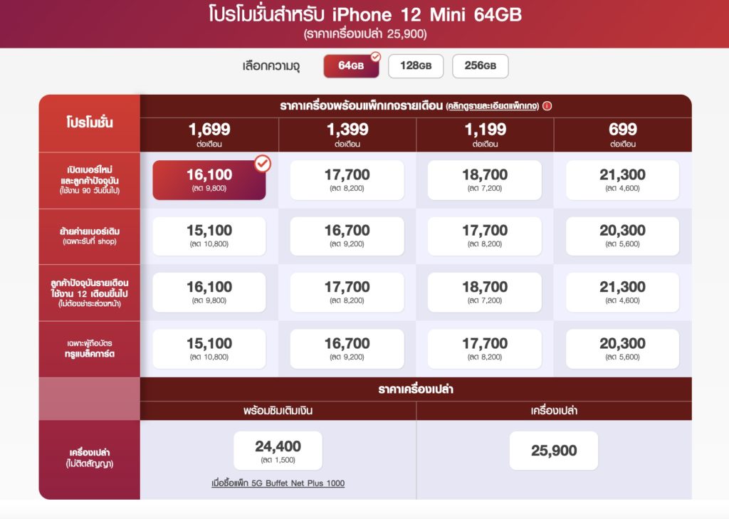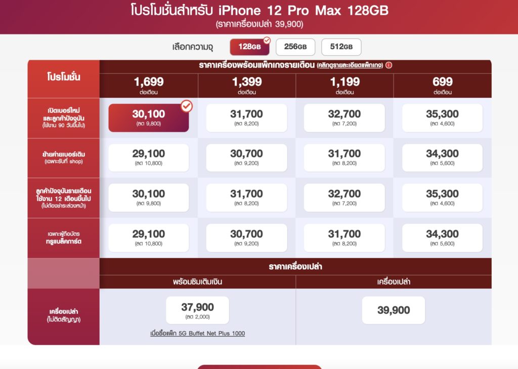 การสั่งซื้อ iPhone 12 ล่วงหน้าที่ TrueMove H เราจะได้รับส่วนลดสูงสุด 9,800 บาท โดย iPhone 12 mini เริ่มต้นที่ 16,100 บาท, iPhone 12 เริ่มต้นที่ 20,100 บาท, iPhone 11 Pro เริ่มต้นที่ 27,100 บาท และ iPhone 12 Pro Max เริ่มต้นที่ 30,100 บาท