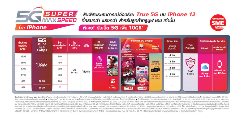 แพ็กเกจที่น่าสนใจในก็คือ 5G Super Max Speed for iPhone ที่เป็นแบบ Unlimited ราคาตั้งแต่ 1,199 – 1,999 บาท เพราะจะทำให้เราสามารถใช้งานอินเทอร์เน็ตบนเครือข่าย 5G ได้เต็มที่แบบไม่จำกัด ทั้งเร็วและแรง เล่นเน็ตไหลลื่น ไม่ต้องกังวลว่า 5G จะหมด