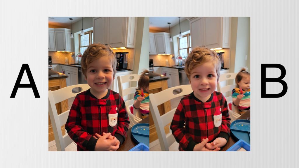 สำหรับการถ่ายภาพในที่ร่ม ทั้งสองภาพให้สีสันและรายละเอียดที่คมชัดเหมือนกัน ภาพ B จะให้ความสว่างที่ตัวแบบมากกว่าภาพ A