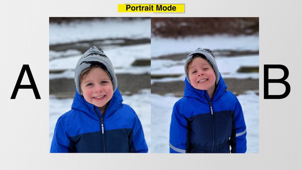 โหมดถ่ายภาพบุคคล (Portrait Mode) โดยถ่ายภาพคนจริง ๆ ทั้งภาพ A และภาพ B ให้ความคมชัดเหมือนกัน เก็บรายละเอียดได้ดี สีสันสดใส่ทั้งคู่ แต่ระยะของภาพ A ใกล้กว่าภาพ B