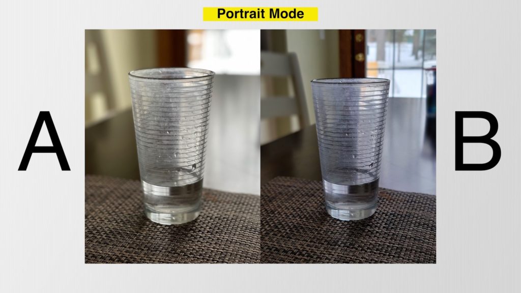 ส่วนการถ่ายภาพบุคคล (Portrait Mode) กับวัตถุอย่างแก้วน้ำนั้น ภาพ B ดูเก็บได้ขอบได้เนียนกว่าภาพ A