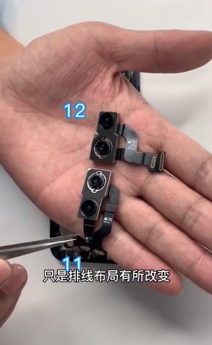 ในวิดีโอเผยว่า iPhone 12 ใช้จอ OLED ที่บางกว่าจอ LCD ของ iPhone 11 รวมไปถึง Tapic Engine ของ iPhone 12 มีขนาดเล็กกว่าของ iPhone 11 ด้วย
