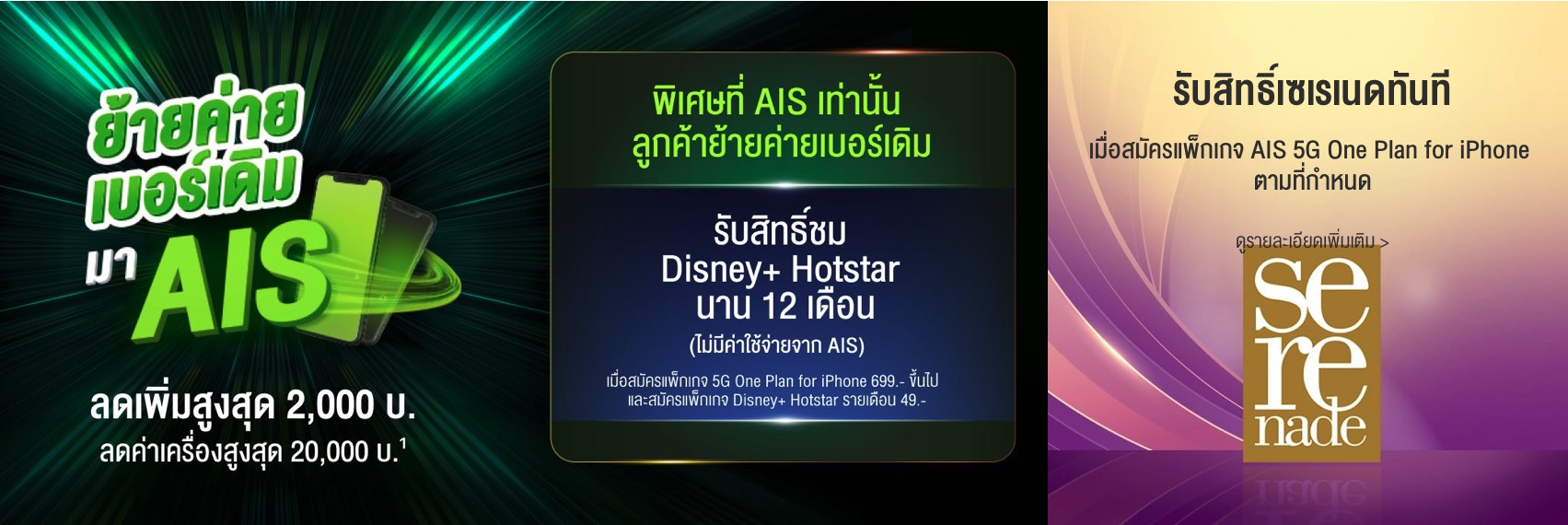 - รับสิทธิ์เป็นลูกค้า Serenade เมื่อสมัครแพ็กเกจ AIS 5G One Plan for iPhone