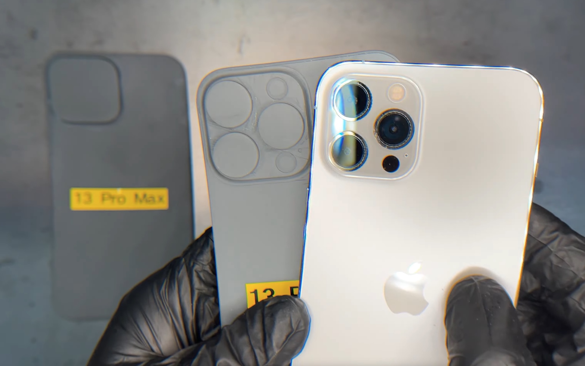 ภาพ CAD ในวิดีโอเป็นของ iPhone 13 mini, iPhone 13 Pro Max โดยจุดสำคัญที่เห็นได้ชัดคือพื้นที่กล้องหลังที่ใหญ่กว่าเดิม เป็นสัดส่วนกว่าเดิม,