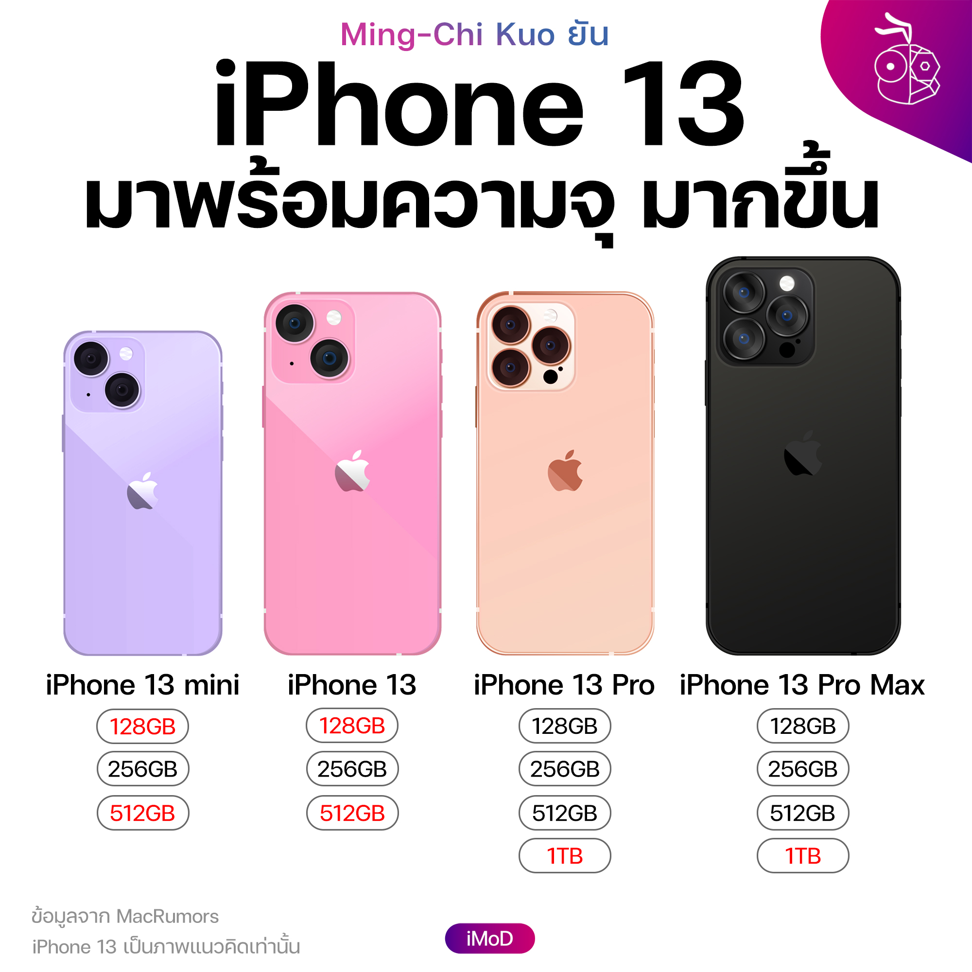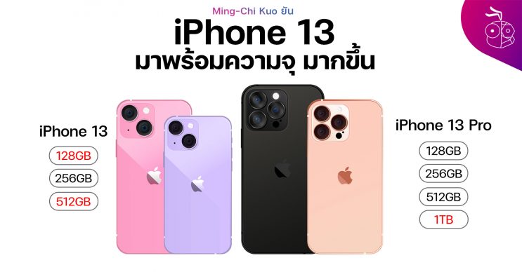 Ming-Chi Kuo ได้รายงานข้อมูลเกี่ยวกับความจุของ iPhone 13, iPhone 13 Pro ไว้ ดังนี้