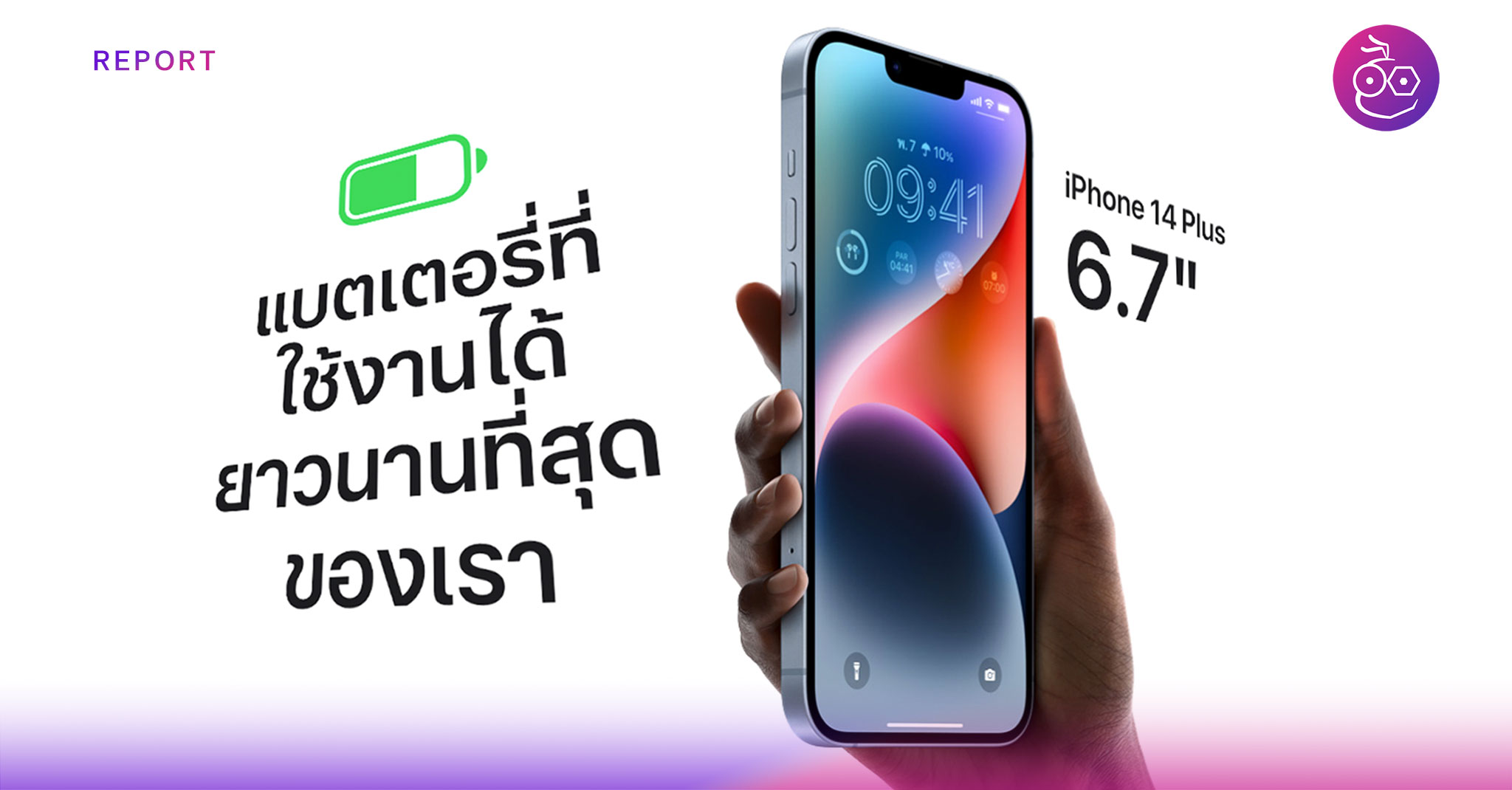 Apple เคลมว่า iPhone 14 Plus เป็น iPhone ที่แบตใช้งานได้ดีที่สุดใน iPhone และเผยว่า iPhone 14 ทุกรุ่นใช้งานได้ตลอดวัน