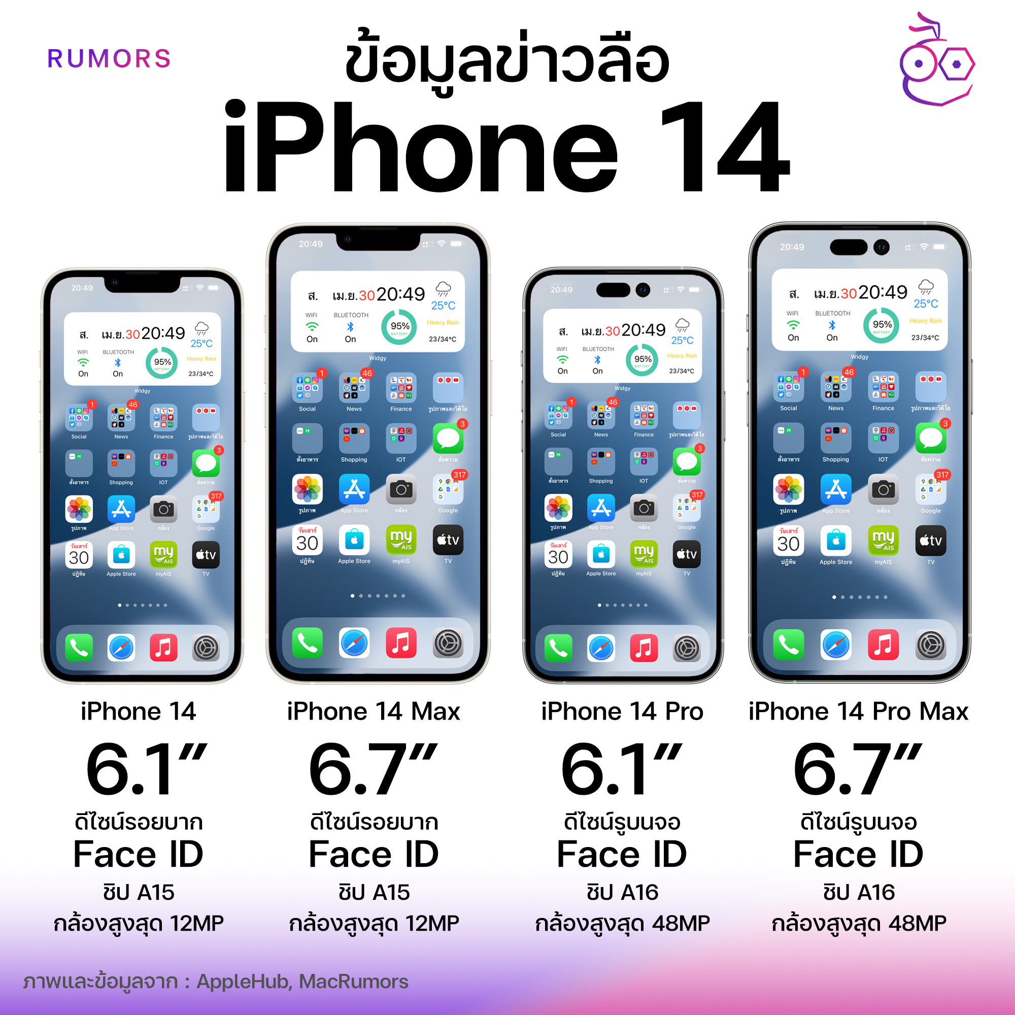 ShrimpApplePro เผยข้อมูลความจุแบตเตอรี่ iPhone 14 ทั้ง 4 รุ่น ดังนี้