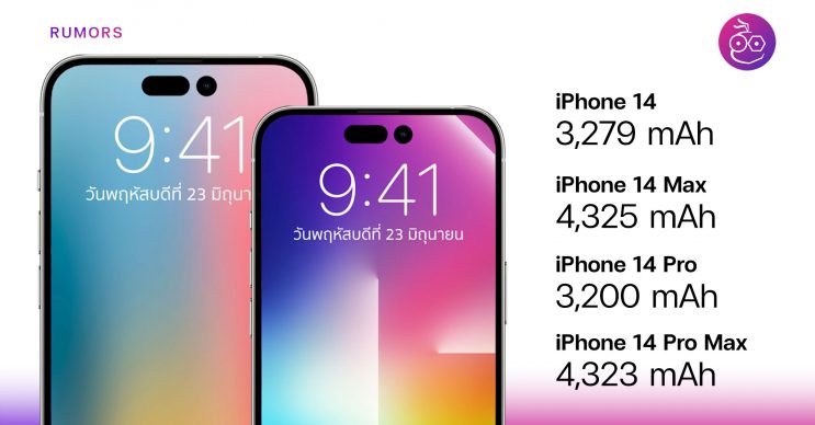 ที่มา : https://www.iclarified.com/86444/alleged-iphone-14-battery-capacities-leaked-rumor