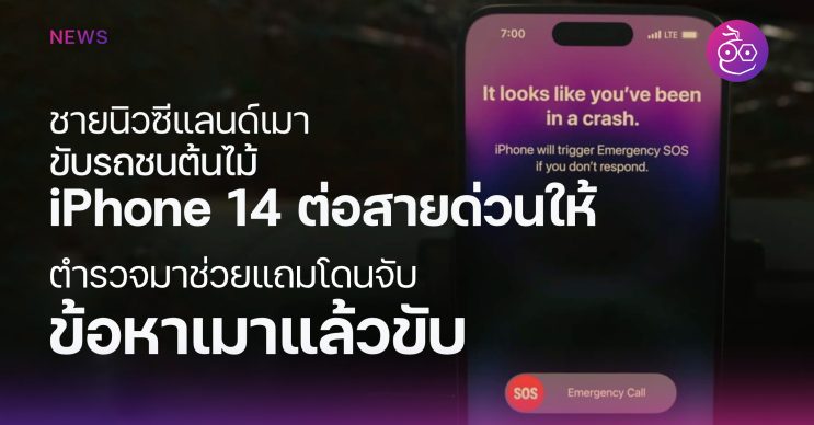 ชายนิวซีแลนด์เมา ขับรถชนต้นไม้ iPhone 14 ต่อสายด่วนให้อัตโนมัติ ตำรวจมาช่วยแถมโดนจับข้อหาเมาแล้วขับ