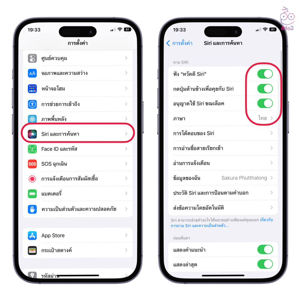 ตั้งค่าเปิดใช้งาน Siri ที่ การตั้งค่า (Settings) > Siri และการค้นหา (Siri & Search) > เปิดใช้งาน ฟัง “หวัดดี Siri” และตั้งค่าให้เรียบร้อย และเปิดใช้งาน กดปุ่มด้านข้างเพื่อคุยกับ Siri ด้วย