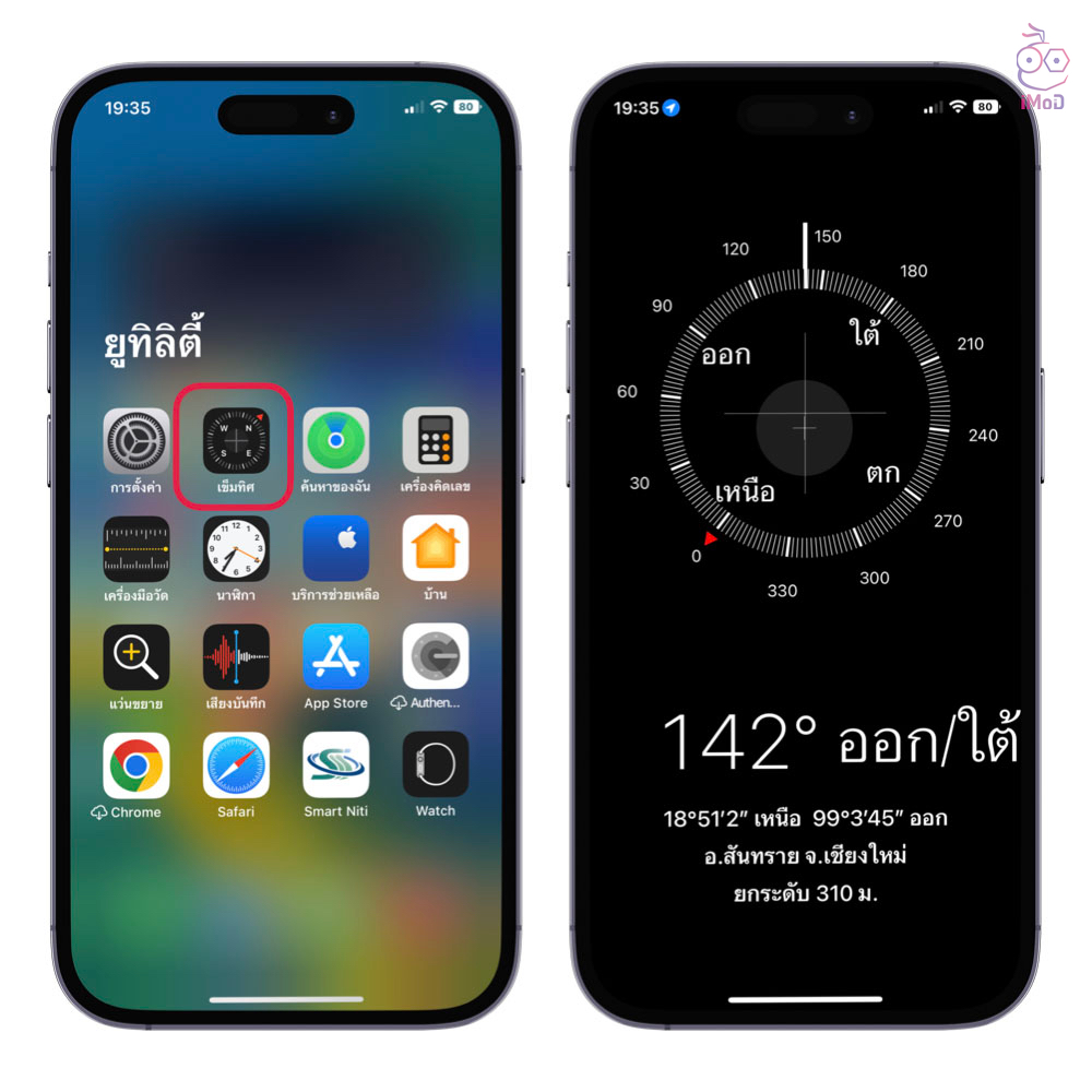 เปิดแอปเข็มทิศหรือ Compass ขึ้นมาจากนั้นลองหันไปยังทิศทางที่เรารู้จัก เช็คว่าทิศทางถูกต้องหรือไม่