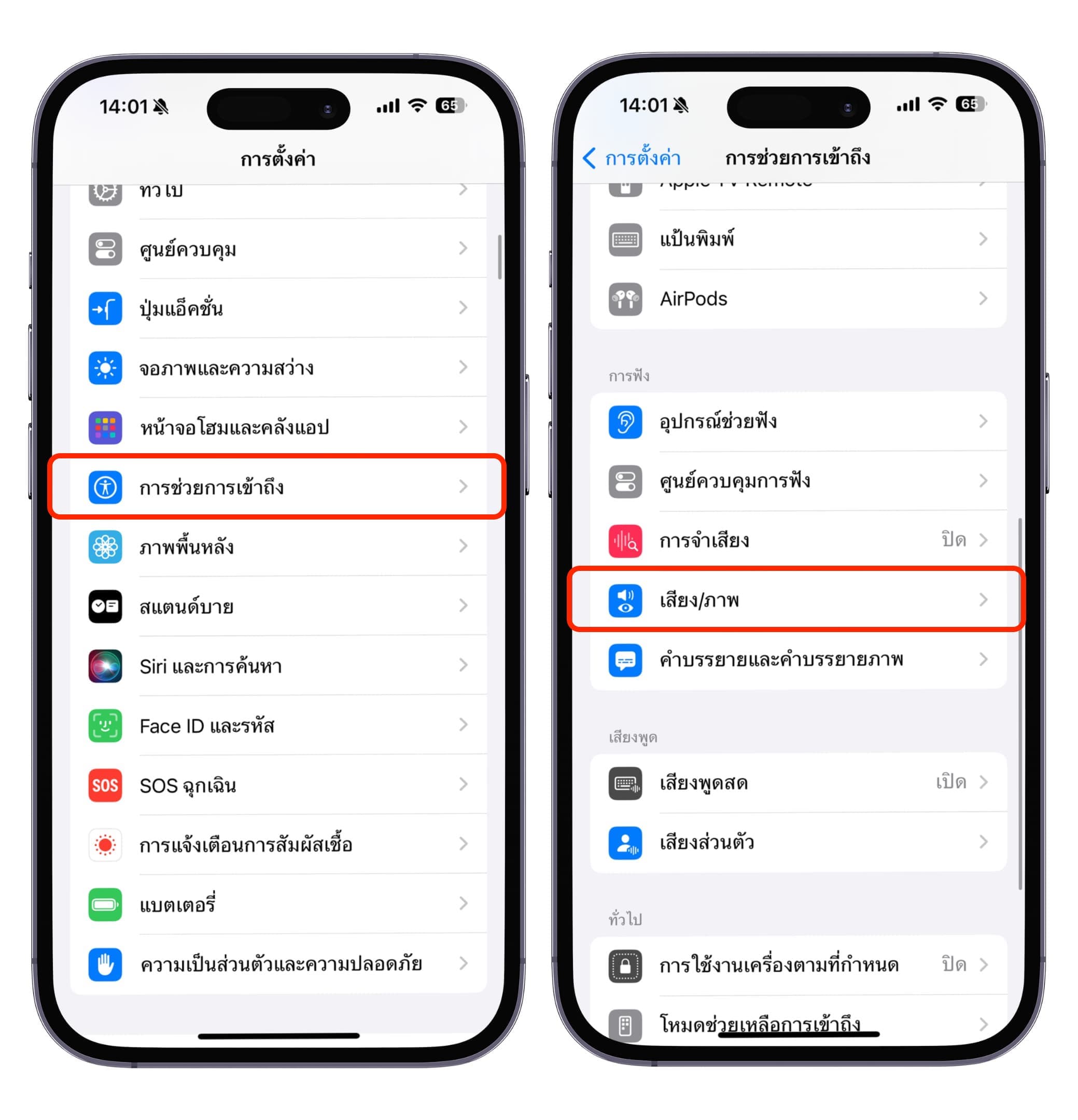 ไปที่แอปการตั้งค่า > การช่วยการเข้าถึง > เสียง/ภาพ >