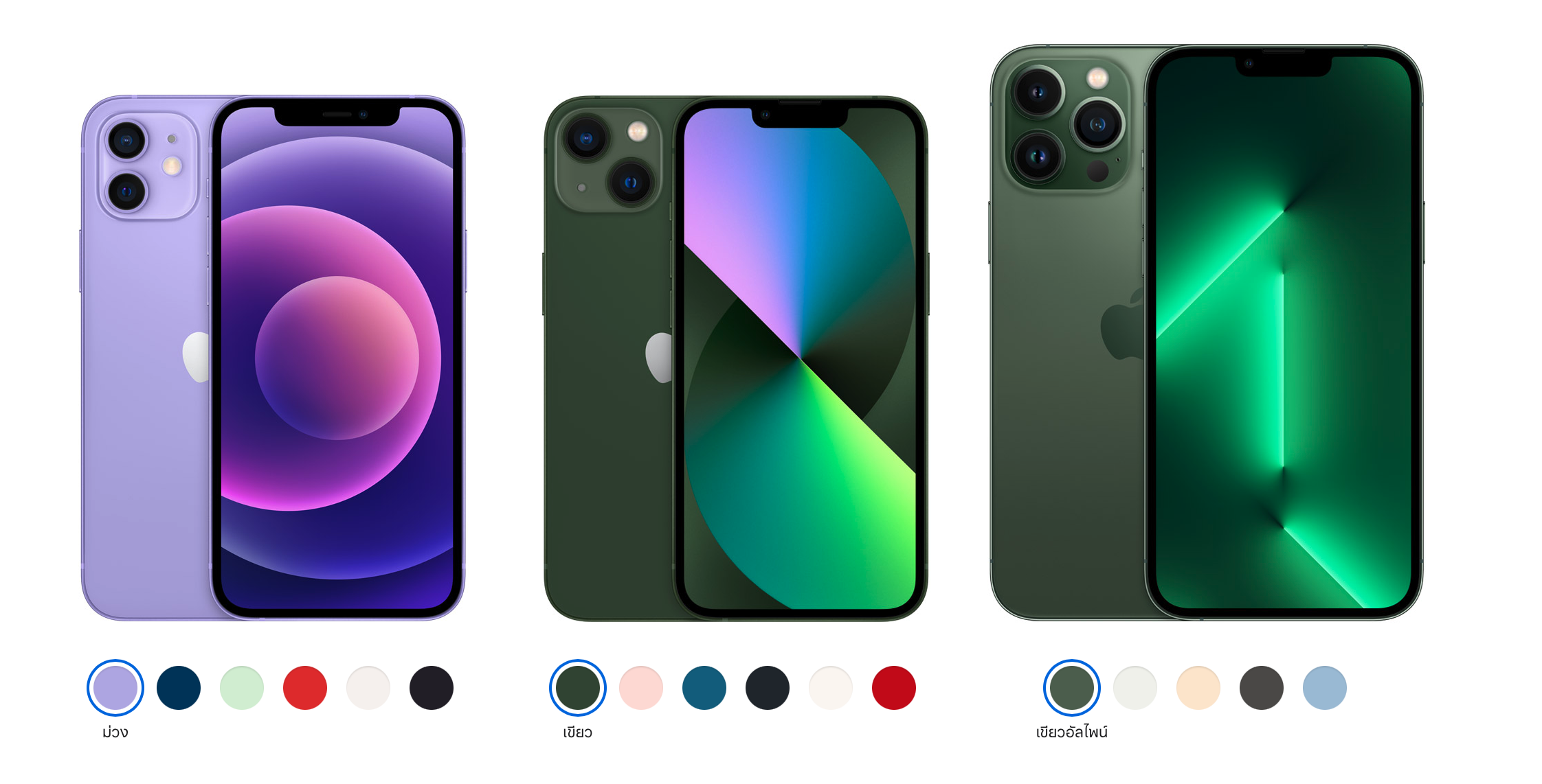 Apple เปิดตัว iPhone 12, 12 mini สีม่วงในเดือน เม.ย. 2021 และเปิดตัว iPhone 13, 13 mini, 13 Pro และ 13 Pro Max สีเขียวใหม่วันที่ 8 มี.ค. 2022 ซึ่งเป็นการเปิดตัวรุ่นสีใหม่หลังเปิดตัวรุ่นหลักราว ๆ 6 เดือน