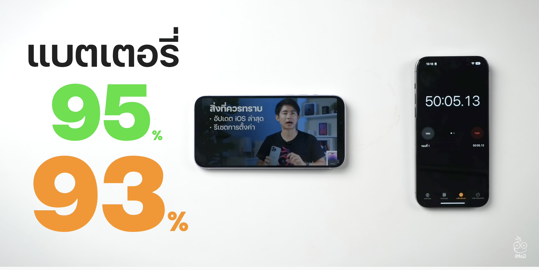 ผลที่ได้คือ ตัวเครื่องไม่ร้อน แบตเตอรี่ลดลงไป 2% เหลือ 93%