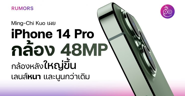 Kuo เผยว่าเหตุผลหลักที่ทำให้พื้นที่กล้องหลังใหญ่ขึ้น นูนและหนากว่าเดิมก็เพราะ iPhone 14 Pro จะใช้กล้อง Wide ตัวหลักความละเอียด 48MP โดย CIS (เซ็นเซอร์ภาพ) จะเพิ่มขึ้นจาก 25-35% โดยเลนส์ตัวใหม่จะหนากว่าแบบเดิม 5-10%