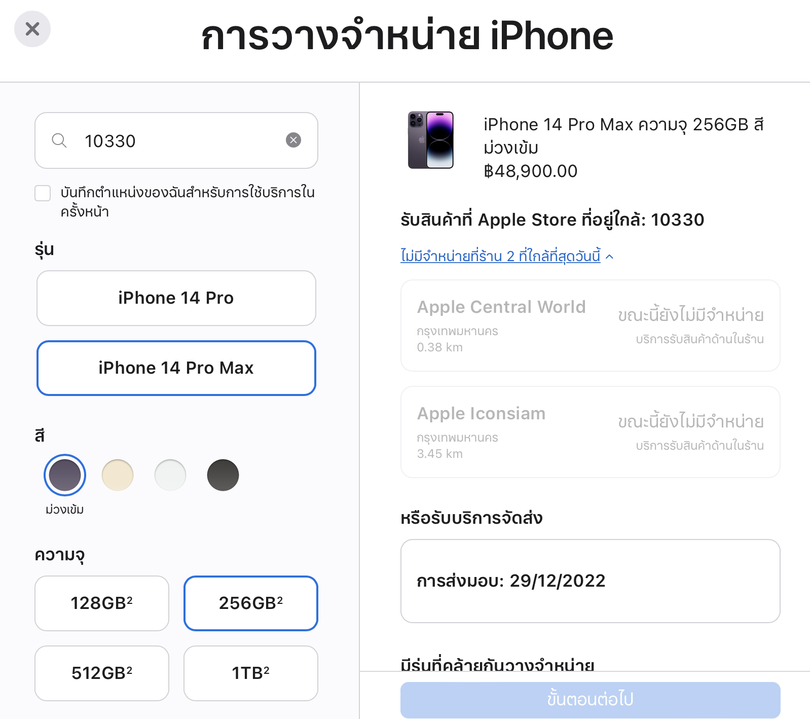 Apple เติมของ iPhone 14 Pro, 14 Pro Max ที่ช่องทางออนไลน์แล้ว สั่งซื้อวันนี้ 5 ธ.ค. 65 รับของทันภายในปี 65 นี้อยู่