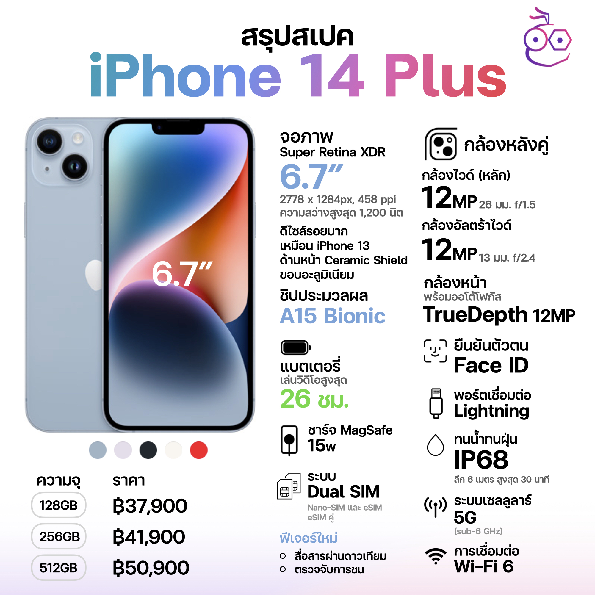 โดยรวม iPhone 14 Plus จะมีสเปคที่และรองรับฟีเจอร์การทำงานเหมือนกับทางฝั่งของ iPhone 14 ทั้งหมด จุดแตกต่างกันที่เพิ่มเข้ามานั่นก็คือ