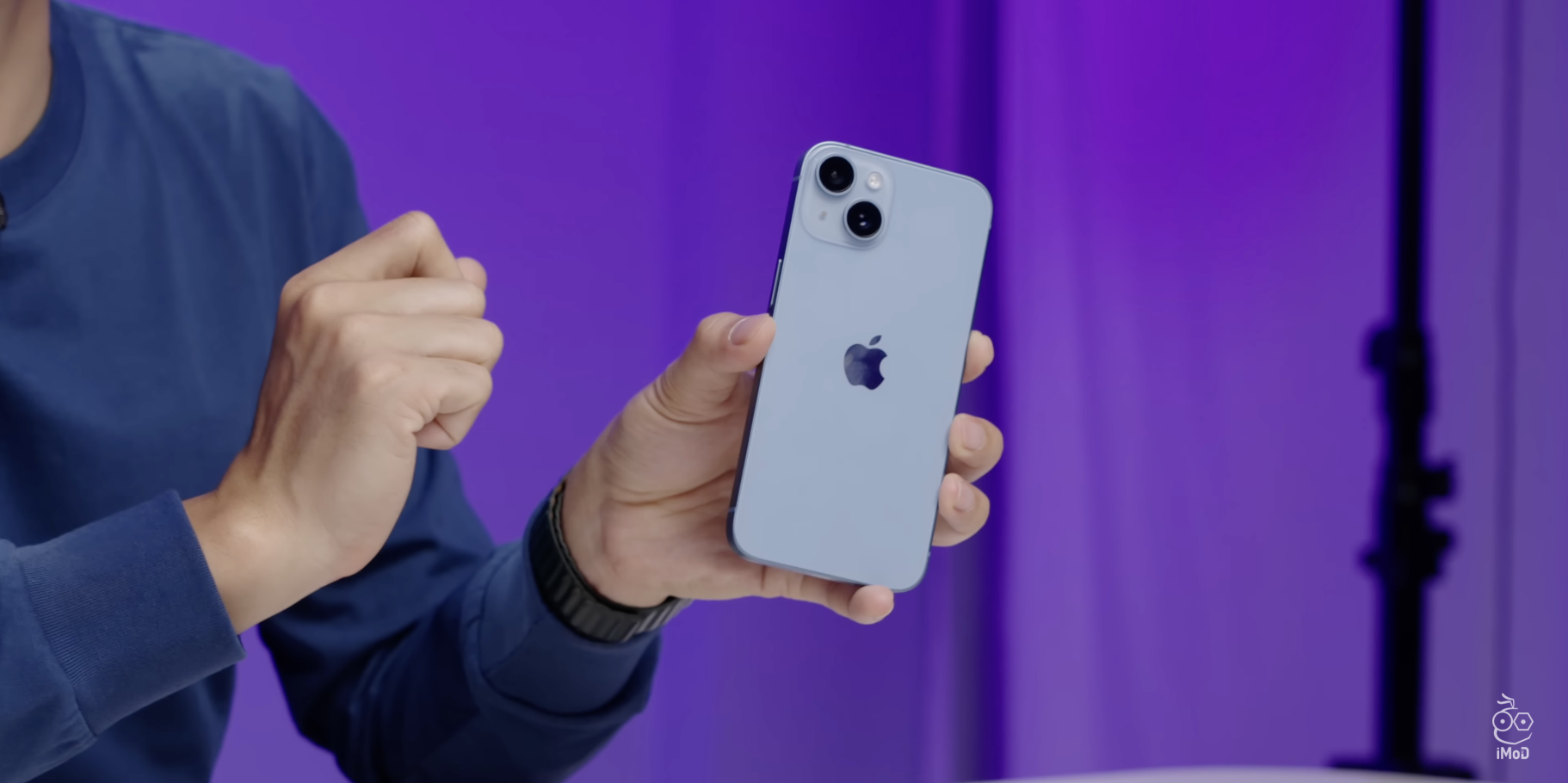 ทั้ง iPhone 14 และ iPhone 14 Plus ใช้วัสดุแบบอลูมิเนียม สีของตัวเครื่องมีลักษณะด้าน