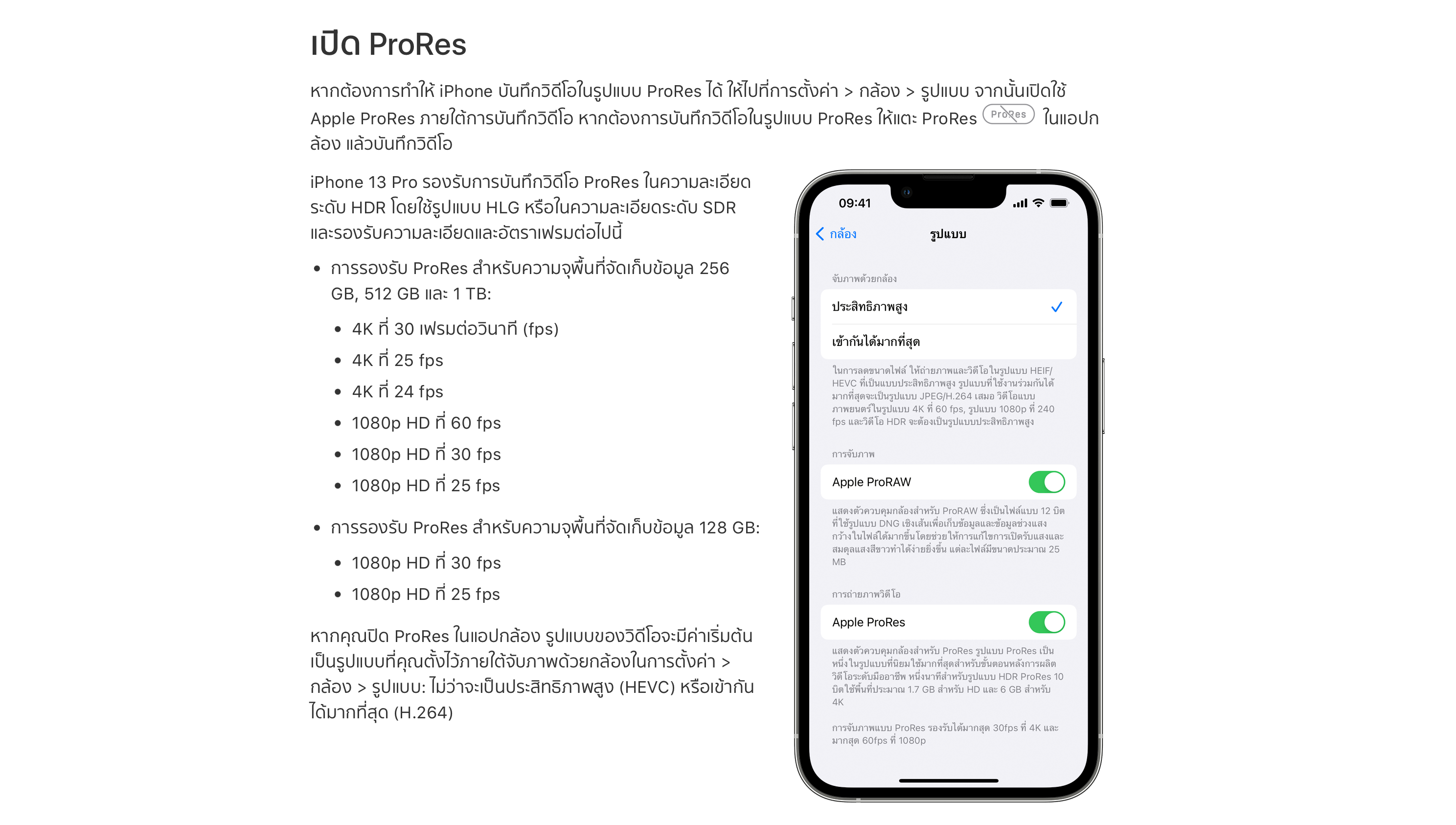 (การถ่ายภาพ ProRAW, ProRes จะต้องเลือกความจุของ iPhone 14 Pro และ iPhone 14 Pro Max ในความจุ 256GB เป็นต้นไป)