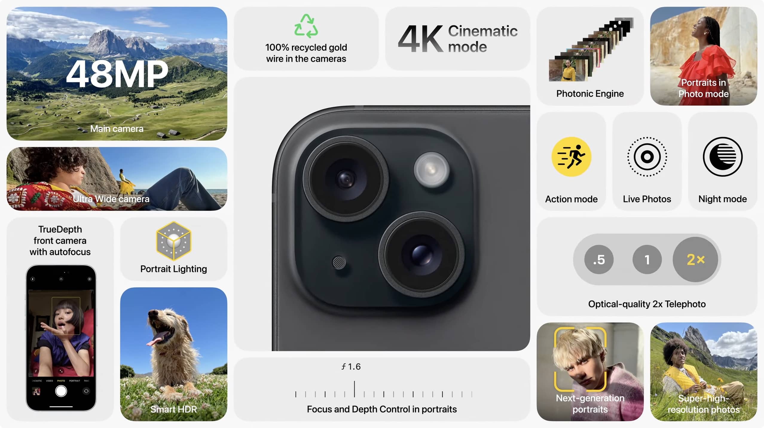 iPhone 15 และ iPhone 15 Plus ยังมีคุณสมบัติใหม่อย่างภาพถ่ายบุคคลเจเนอเรชั่นถัดไปที่ให้รายละเอียดคมชัดมากขึ้น สีสันสดใสกว่าเดิม และปรับปรุงประสิทธิภาพในสภาวะแสงน้อยให้ดีขึ้น ถือเป็นครั้งแรกที่ผู้ใช้จะถ่ายภาพบุคคลได้โดยไม่ต้องสลับไปเป็นโหมดภาพถ่ายบุคคล เพราะ iPhone จะเก็บข้อมูลชัดลึกโดยอัตโนมัติเมื่อมีบุคคล สุนัข หรือแมวอยู่ในเฟรมภาพ
