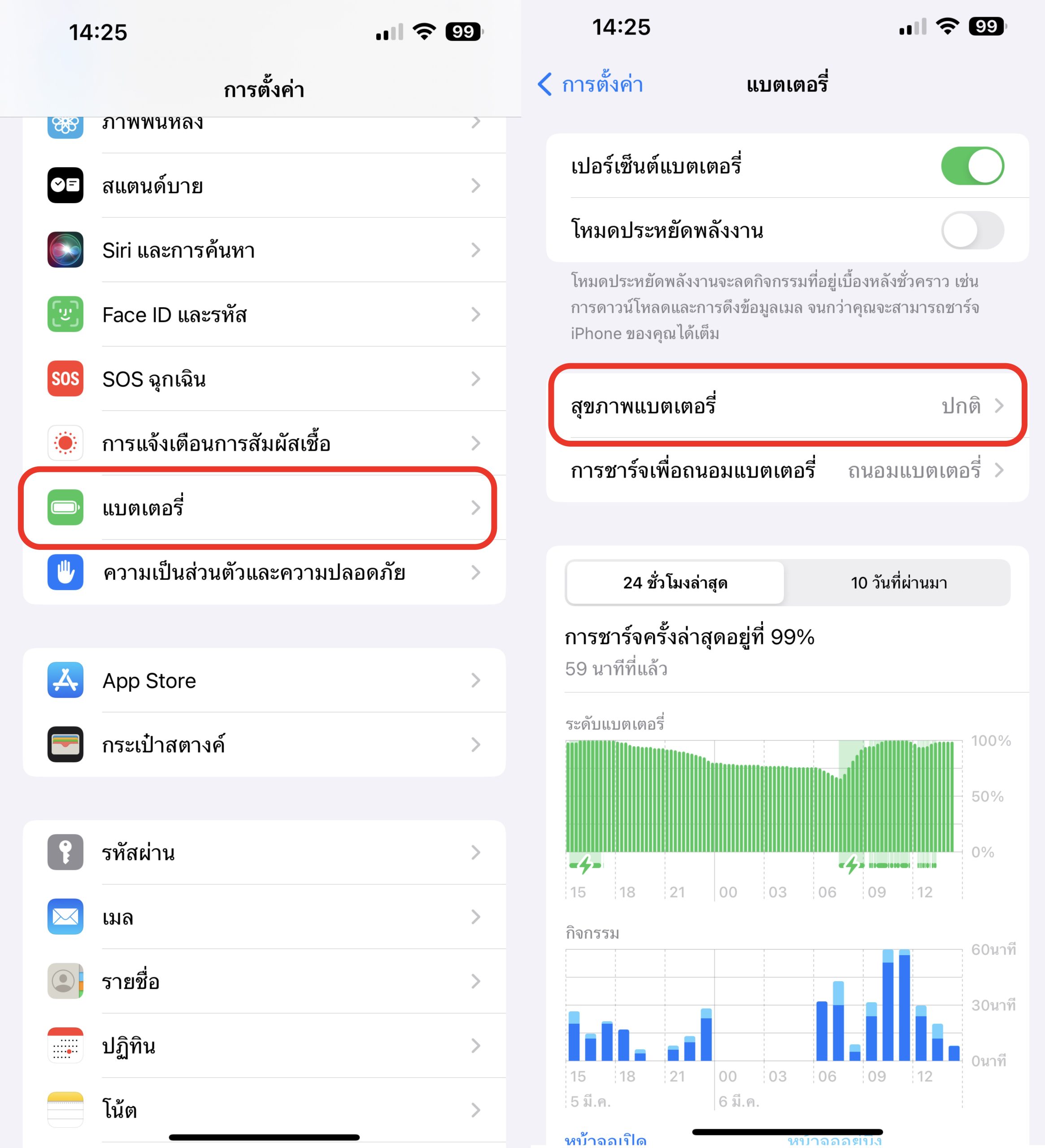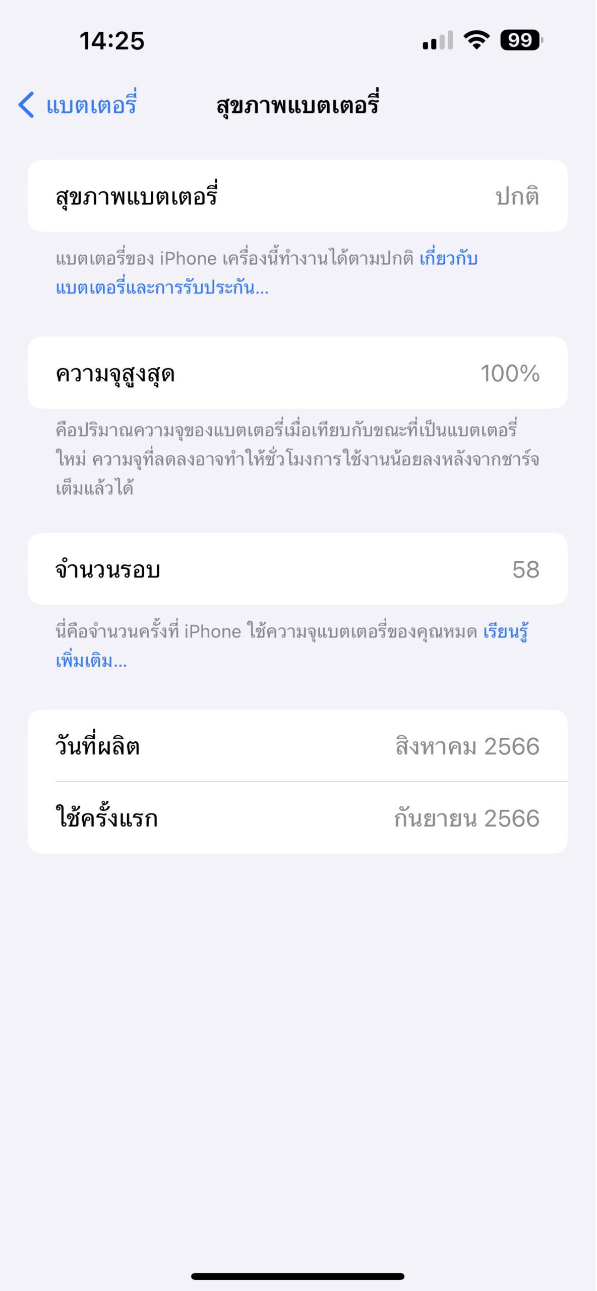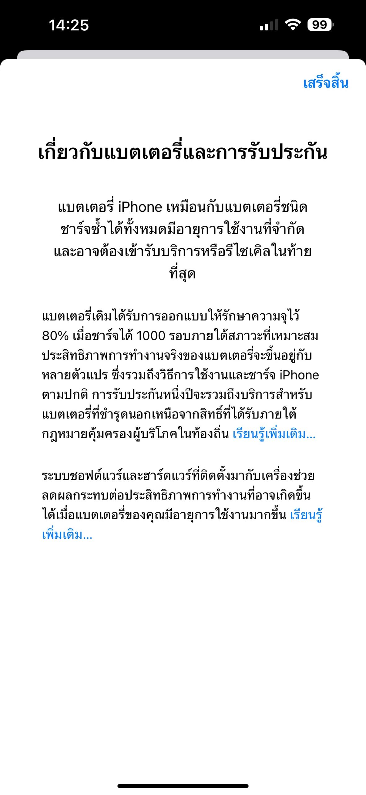 *ก่อนหน้านี้ข้อความดังกล่าวจะแสดง % ความจุสุงสุดของ iPhone, แต่สำหรับ iPhone 15 จะแสดงเป็นข้อความแทน เพื่อให้เข้าใจเลยว่าสุขภาพแบตอยู่ในสถานะปกติหรือไม่
