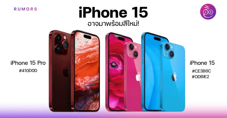 9to5Mac รายงานข้อมูลการมาของสีใหม่ โดย iPhone 15 Pro มาพร้อมสีแดงใหม่ ส่วน iPhone 15 มีมาพร้อมสีชมพู และสีฟ้าใหม่!