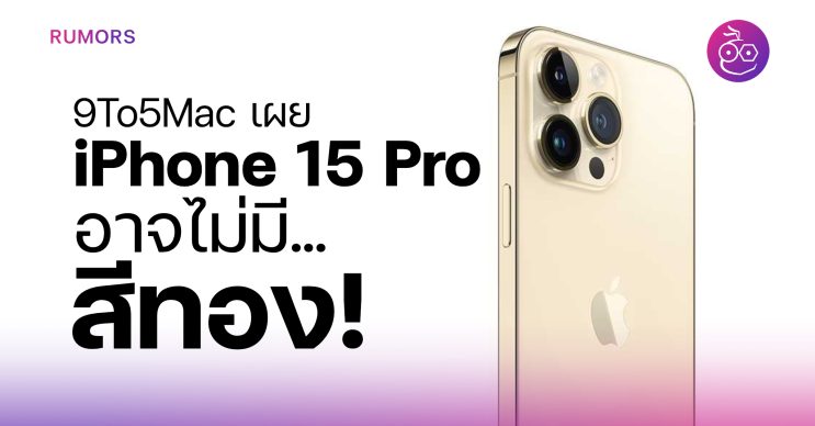9to5Mac เผยรายงานว่า iPhone 15 Pro และ iPhone 15 Pro Max รุ่นใหม่ปีนี้อาจไม่มีสีทอง (Gold) เป็นสีใหม่อย่างที่เคย โดยสีทองอาจถูกยกเลิกไปเพราะ iPhone 15 Pro และ iPhone 15 Pro Max เปลี่ยนวัสดุกรอบเครื่องจากสแตนเลสเป็นไทเทเนียม