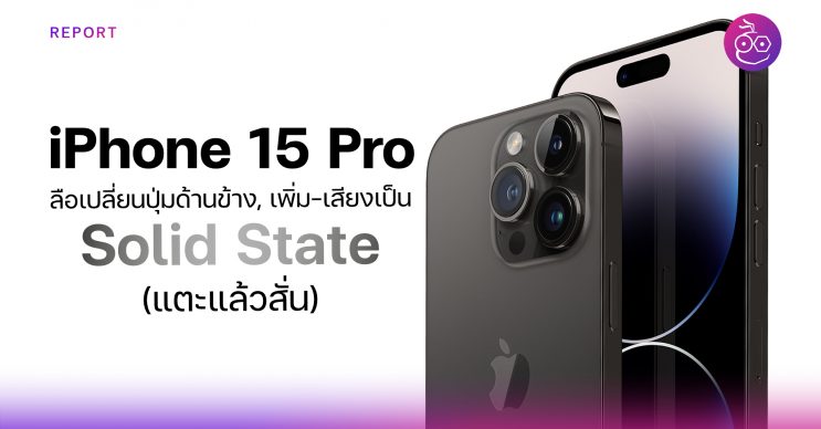 (ลือ) iPhone 15 Pro จะเปลี่ยนปุ่มด้านข้าง, เพิ่ม-ลด เสียง เป็นแบบ Solid State (แตะแล้วสั่น)