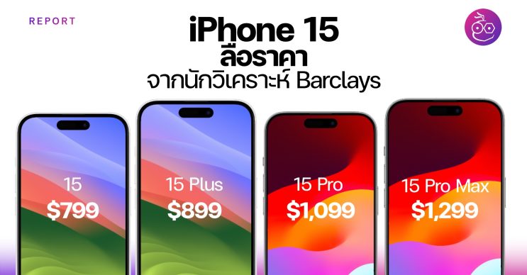 Tim Long นักวิเคราะห์ของ Barclays ได้เผยข้อมูลคาดการณ์ราคาของ iPhone 15 ทุกรุ่น โดย iPhone 15 Pro, iPhone 15 Pro Max อาจมีราคาเริ่มต้นสูงขึ้น