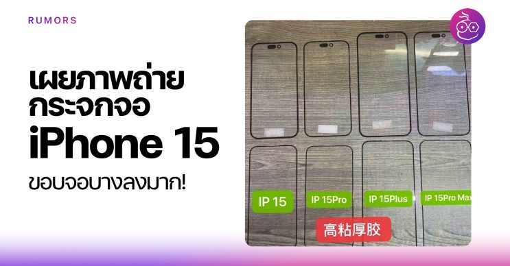 iPhone 15 รุ่นใหม่อาจปรับดีไซน์หน้าจอเล็กน้อย โดยมีรายงานและภาพถ่ายกระจกหน้าจอ iPhone 15 เผยว่า ขอบหน้าจอบางลงมาก