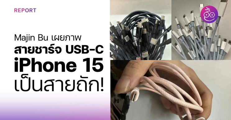 Majin Bu โพสต์ภาพถ่ายพร้อมระบุว่าอาจเป็นสายชาร์จ USB-C แบบถักสำหรับ iPhone 15 โดยระบุว่าเป็นภาพที่เห็นมาจากสื่อออนไลน์ แต่ยังไม่สามารถระบุแหล่งที่มาจริง ๆ ของภาพได้