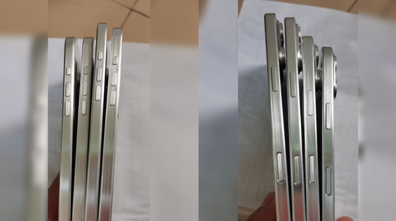 สำหรับด้านข้างเครื่องนั้นพบว่าทั้ง 4 รุ่นมาพร้อมปุ่ม Action ขนาดพอ ๆ กับของ iPhone 15 Pro, 15 Pro Max ส่วนอีกด้านจะมีปุ่มขนาดยาว คาดว่าเป็นปุ่ม Capture อยู่ที่ด้านล่างขวาของตัวเครื่อง