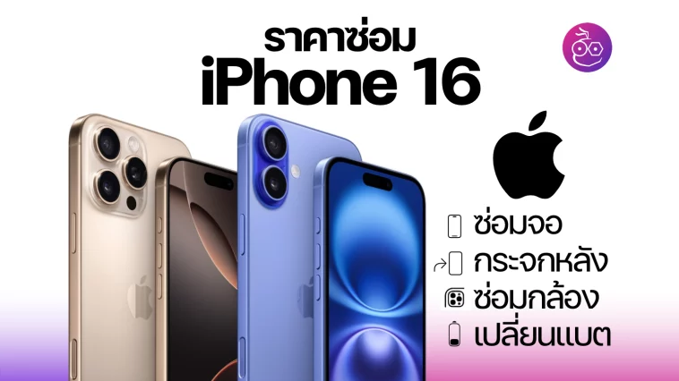 ราคาซ่อมจอ กระจกหลัง เปลี่ยนแบต iPhone 16 ทุกรุ่น ซ่อมที่ศูนย์บริการ Apple