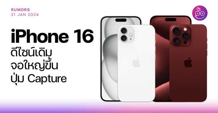 ลือ! iPhone 16 ยังใช้ดีไซน์เดิม เพิ่มปุ่ม Capture และจอใหญ่ขึ้น ส่วน AI มาปีหน้า