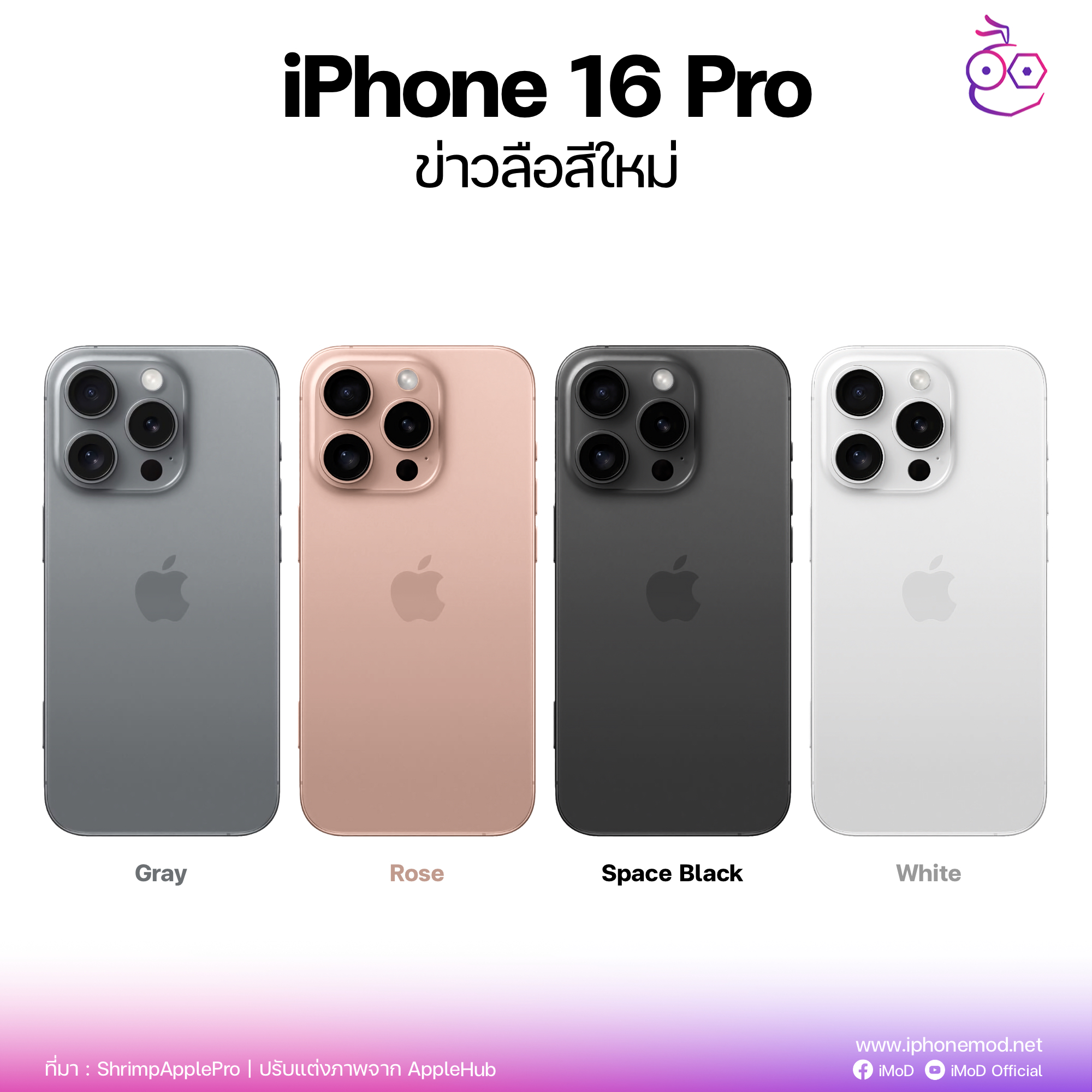 สำหรับ iPhone 16 Pro, iPhone 16 Pro Max นั้นเคยมีข่าวลือว่าจะมาพร้อมสี Space Black, Rose, Gray และ White โดยกรอบเครื่องใช้วัสดุไทเทเนียม แบบขัดเงา