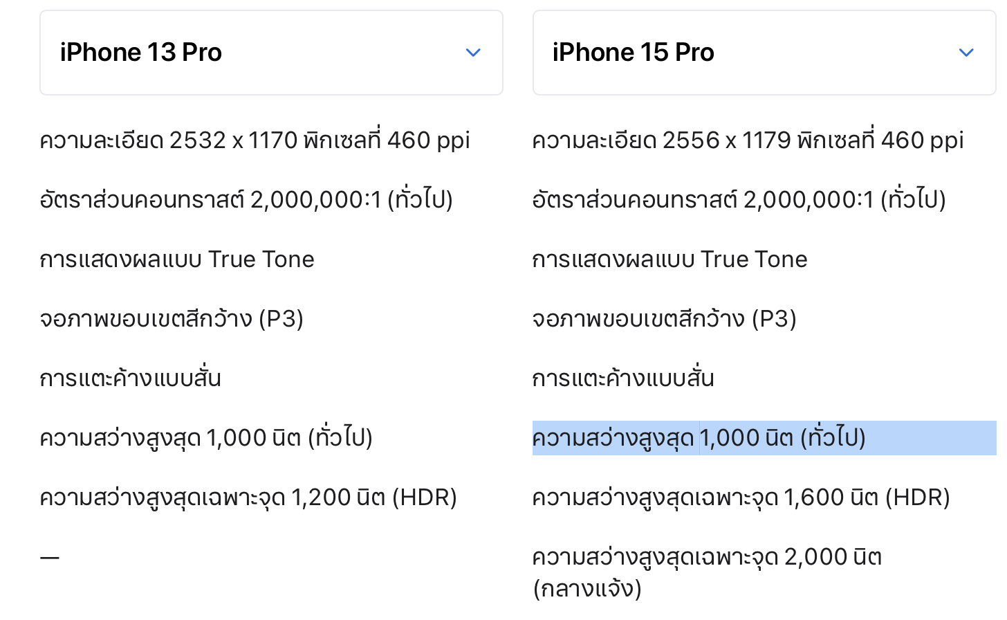สเปคความสว่างหน้าจอ SDR 1,000 nits นั้นถูกใช้มาตั้งแต่ iPhone 13 Pro มาจนถึง iPhone 15 Pro, ดังนั้นหาก iPhone 16 Pro อัปเกรดความสว่างหน้าจอ SDR เป็น 1,200 nits ก็ถือว่าเป็นครั้งแรกในรอบหลายปีเลยทีเดียว!