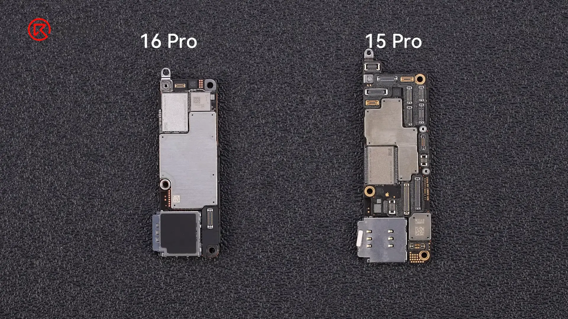 iPhone 16 Pro ใช้แผงวงจรแบบใหม่มีขนาดเล็กกว่าเดิม ดีไซน์กระทัดรัดขึ้น มีชิ้นส่วนสำหรับกระจายความร้อนใหญ่ขึ้นด้วย