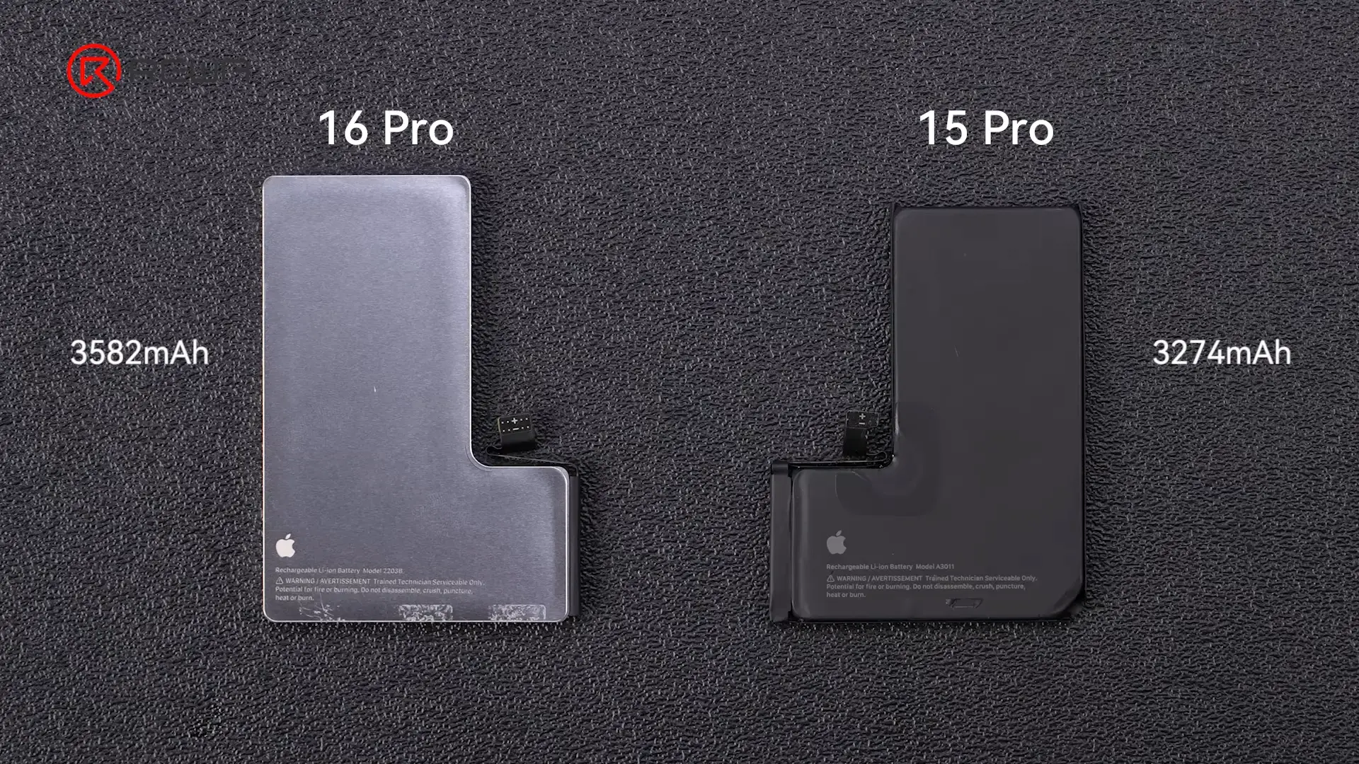 ขนาดแบตเตอรี่ iPhone 16 Pro ใหญ่ขึ้น พร้อมความจุมากขึ้น จากเดิม iPhone 15 Pro ความจุ 3,274 mAh เพิ่มเป็น 3,582 mAh