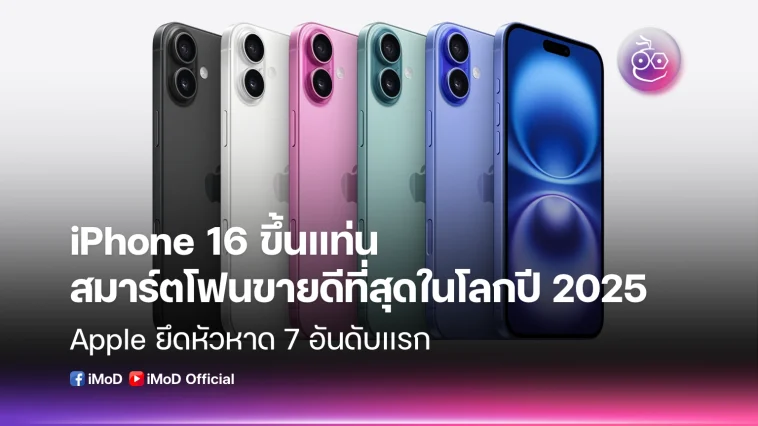 iPhone 16 ขึ้นแท่นสมาร์ตโฟนขายดีที่สุดในโลกปี 2025