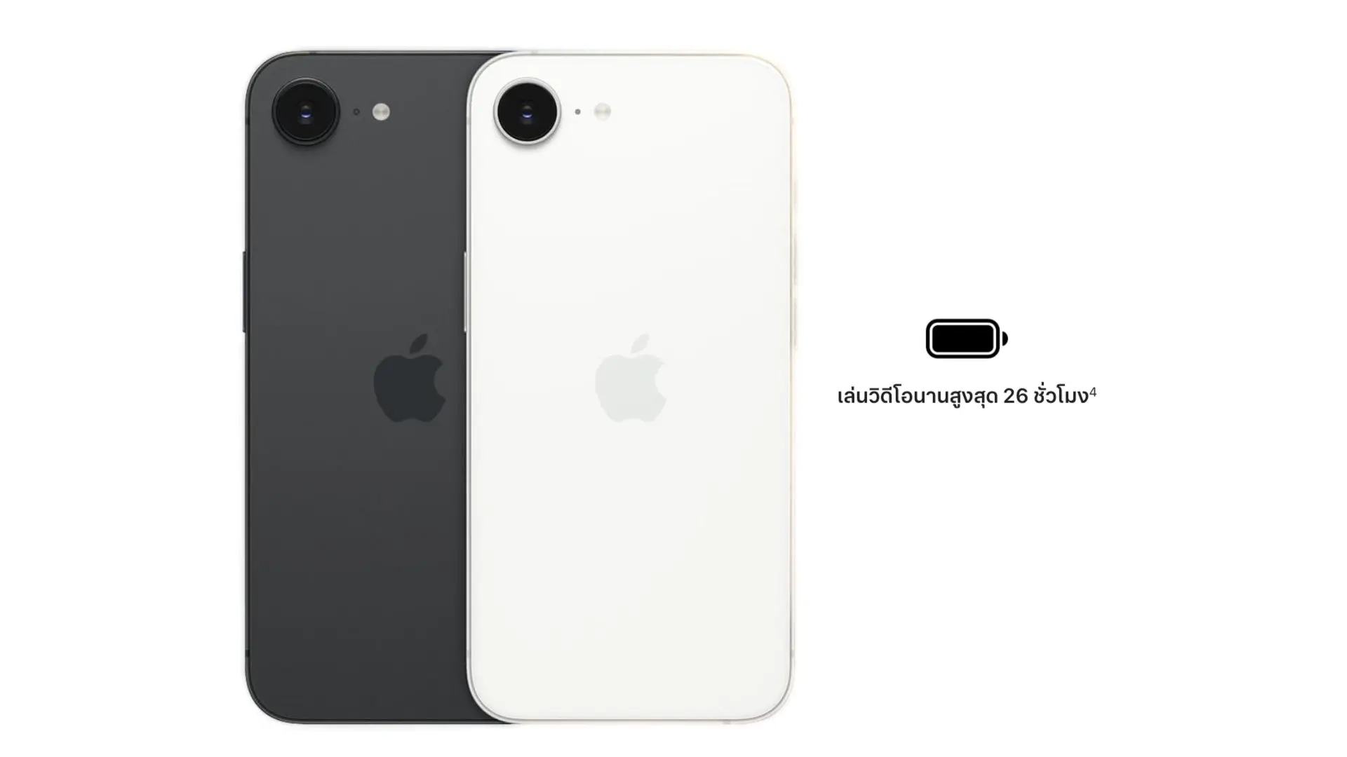 - iPhone 16e เมื่อเทีบกับ iPhone 16 สามารถเล่นวิดีโอได้นานกว่า 4 ชั่วโมง