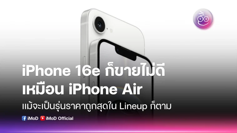 Fixed Focus Digital รายงานข้อมูลว่า iPhone 16e ก็ขายไม่ดีเหมือนกับ iPhone Air แม้ iPhone 16e จะชูเรื่องเป็นรุ่นราคาย่อมเยาที่สุดในซีรีส์ก็ตาม