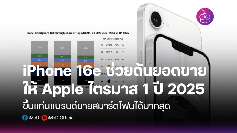 iPhone 16e ทำตลาดได้ค่อนข้างดี ช่วยดันยอดขาย iPhone ทำให้ Apple ขึ้นแท่นแบรนด์ขายสมาร์ตโฟนได้มากสุดไตรมาส 1 ปี 2025