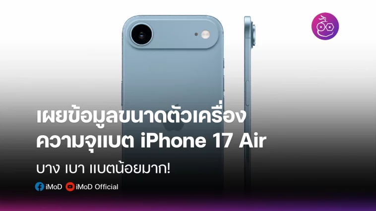 มีรายงานข้อมูลขนาดตัวเครื่อง และความจุแบตของ iPhone 17 Air เผยออกมา โดยตัวเครื่องบาง และแบตความจุน้อยมาก ๆ