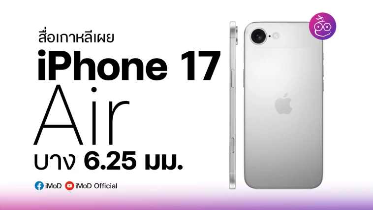 มีรายงานข้อมูลเผยออกมาว่า iPhone 17 Air เครื่องบาง บางเพียง 6.25 มม. เท่านั้น โดยจะเป็นรุ่นที่มาแทน iPhone รุ่น Plus