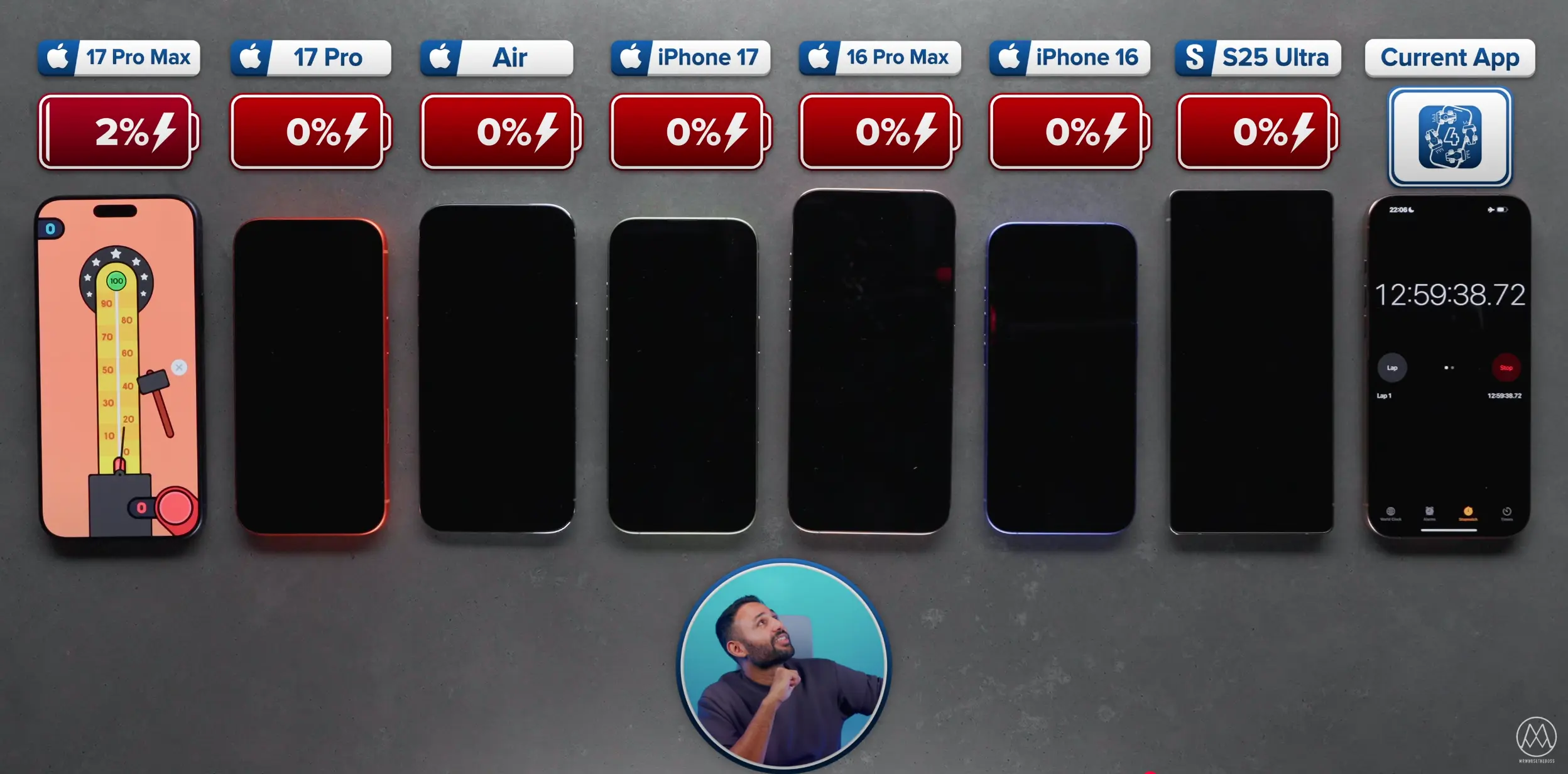 iPhone 17 Pro Max ดูเหมือนว่าจะเป็นผู้นำในเรื่องแบตเตอรี่ในโลกสมาร์ทโฟน โดยเห็นได้จากการเปรียบเทียบในการทดสอบของ Mrwhosetheboss ในการจำลองการใช้งานครั้งนี้ Samsung Galaxy S25 Ultra มีระยะเวลาการใช้งานอยู่ที่ 11 ชม. 58 นาที ขณะที่ iPhone 17 Pro Max สามารถใช้งานได้นานถึง 13 ชม. ก่อนที่แบตเตอรี่จะหมด