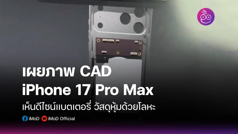 มีรายงานภาพดีไซน์ภายในของ iPhone 17 Pro Max ตัวเครื่องคาดว่าใช้วัสดุอะลูมิเนียมขึ้นรูปตัวเดียว และแบตเตอรี่วัสดุโลหะ