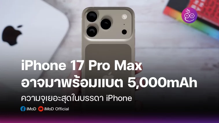 - iPhone 17 Pro Max: ประมาณ 5,000mAh