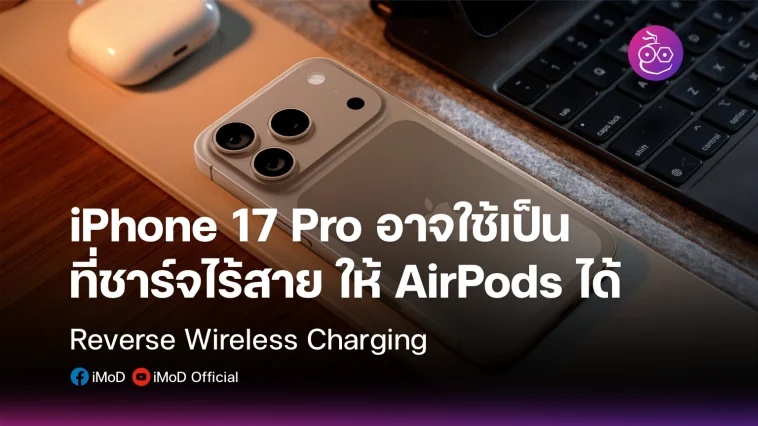 มีรายงานว่า iPhone 17 Pro อาจใช้เป็นที่ชาร์จไร้สาย ชาร์จ AirPods, Apple Watch แบบไร้สายได้ (Reverse Wireless Charging)
