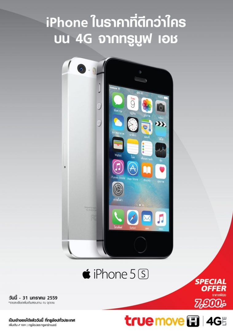 iPhone 5s รุ่นเก่าแต่ยังเก๋าซึ่งก่อนหน้านี้ทาง Banana IT พึ่งจะจัดส่วนลดไป แน่นอนว่ามีเงื่อนไขเล็กน้อยสำหรับราคาพิเศษ และครั้งนี้ก็ถึงคราวของ Truemove H ที่จะมาระบายสต๊อก ราคา 8,900 บาท (ติดแพ็กเกจแต่ไม่แพงมาก) และกรณีที่ย้ายค่ายจะลดเหลือ 7,900 บาท !!!